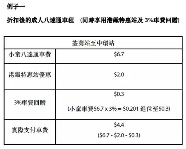 具体优惠方案为, 成人可享受半价优惠,小童和长者可以用1元搭乘。优惠于两日内不限次数,且可以与实时推行的3%车费回赠/换乘优惠。