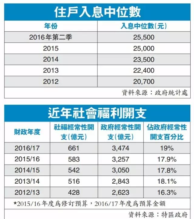 统计处数字显示,8月份整体领取综援个案有近24.1万宗,是连续64个月下跌,也是自2001年4月以来的新低。香港的住户入息中位数近年亦稳步上升,由2012年的20,700元升至今年第二季的25,500元。2012年第二季,香港有55.5万户月入低于1万元水平,至今年第二季已降至 50.8万户。
