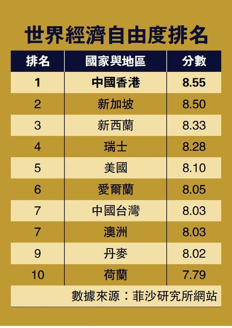 近期,加拿大智库菲沙研究所发布了《世界经济自由度2025年度报告》。据报告,全球共165个经济体参与排名。中国香港以总分8.55蝉联榜首。